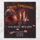 Etiqueta de vinho de Halloween com uma cena de outono com abóbora, velas e aranha grande. Bonita por uma adição um pouco assustadora e festiva para uma celebração de Halloween.