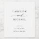 Esta marca de vinho de casamento minimalista moderna é perfeita para o seu casamento moderno clássico e simples preto e branco. A design apresenta letras de escrita de caligrafia em conjunto com a tipografia mínima moderna.