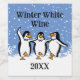 Rótulo de Vinho Design de Pinguins dançantes em fundo de neve, com texto e cor personalizáveis.