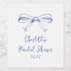 Adicione um toque especial ao seu chá de noiva com esses rótulos de garrafa de vinho personalizados. Com um laço delicado desenhado à mão e letra elegante, eles trazem charme e sofisticação para qualquer celebração. Personalize com o nome da noiva e a data do evento para um detalhe atencioso que causa uma impressão duradoura. Perfeito para decoração de mesa ou lembrancinha de festa única.