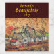 Personalize facilmente o texto deste belo rótulo da garrafa de vinho tinto, que apresenta uma paisagem rústica da vila rural em cores vivas do outono de vermelho, laranja, castanho, ouro, amarelo, azul e verde. A fumaça está se curvando da chaminé de cada casa branca. Um sol brilhante é a ascensão. Flores são plantadas no primeiro plano.