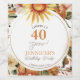 Comemore com sua família e amigos quando você completar 40 anos. Faça uma aniversário de 40 anos e ofereça bebidas com estas bonito etiquetas de vinho de girassol de Boho Autumn. Estes rótulos de vinho para aniversário de 40 anos apresentam um design circular com girassóis rústicos doces e sotaques florais e botânicos de outono. Coloque em seu nome e idade, assim como o tipo de vinho e o ano de colheita para um toque super personalizado.