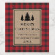 A Xadrez Vermelha russa de Buffalo Vermelho de Feliz Vinho de Natal inclui silhuetas de pinheiro.