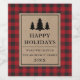 O Rótulo de Vinho da Xadrez Vermelha de Buffalo Feliz Feriados Russo Kraft inclui silhuetas de pinheiros.