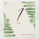 Casamento Samambaia Verde Minimalista. Número da mesa de casamento com ilustração botânica simples e moderna, garrafa de vinho com manchas de aquarela.