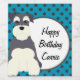 Cachorro Schnauzer bonito com fundo preto e azul de bolinhas e texto personalizável central