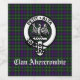 Clã escocês Abercrombie Crest Crachá e texto personalizável sobre fundo tartan. O texto pode ser alterado ou deixado como está.