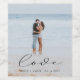 Rótulo personalizado de vinho fotográfico com sua foto personalizada e seu script elegante "love", aliado aos seus próprios monogramas e data em fonte sans serif