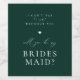 Rótulo moderno minimalista da proposta de Bridesmaid. Design de tipografia elegante em branco com sotaque cardíaco e gráfico caligráfico em fundo verde esmeralda.