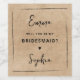 Um charmoso "Você Será Minha Porta-Pontas?" Rótulo de Vinho com um roteiro elegante, colocado sobre um fundo de papel antigo e castanho. Este design de eterno acrescenta um toque de sofisticação rústica, fazer a maneira perfeita de pedir ao seu melhor amigo ou amado para ficar ao seu lado no seu dia especial. Uma maneira única e memorável de dizer, "Você será minha dama de honra?" Quem poderia resistir a dizer sim a uma proposta tão sincera?