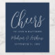 Etiquetas de vinho de casamento legantes que incluem a frase "Saúde ao amor e à felicidade" em letras brancas com um fundo de marinho. Personalize as etiquetas de vinho do casamento do marinho com seus nomes e data do casamento.