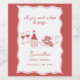 Um design único, desenhado à mão, apresentando ilustrações de vinho e pizza italianos tradicionais. Um lindo design de chá de noiva vermelho e branco com tema de pizza e vinho italianos. Personalize este design de chá de noiva com tema de pizza e vinho e torne-o seu!