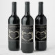 Adicione um toque assustador e personalizado ao seu casamento com estas etiquetas de garrafa de vinho personalizadas. Estas etiquetas são pretas e apresentam uma ilustração das mãos de esqueleto em forma de coração armando os nomes da noiva e do noivo e a data do casamento. Acima deste é o seu próprio slogan personalizado. O gráfico e o texto estão em uma cor creme ou marfim. O estilo macabro é perfeito para casamentos de outubro ou eventos com tema de gótico.