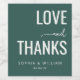 Esta etiqueta de vinho de casamento elegante apresenta um fundo verde-escuro sofisticado com texto branco nítido, criando um contraste marcante. O design apresenta um layout equilibrado com letras maiúsculas em negrito para "LOVE" e "THANKS", complementado por um delicado texto cursivo para a palavra "and". Espaços personalizáveis permitem que você a personalize com nomes e datas, tornando-a perfeita para celebrar seu dia especial. O estilo minimalista exala calor e gratidão, ideal para comemorar a sua história de amor.