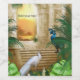 Cenário de fantasia de casamento real, branco e azul-esverdeado, num templo tropical rodeado por verde com decoração de joias de uma pena de ouro moderna. Paleta colorida de ouro, branco e verde, com na moda brilho elegante, plenas de pavão azul-ceruleano de ouro e flores brancas.
