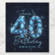 The number "40" is rendered in a stunning, high-definition faux teal sapphire and blue diamond effect, giving the illusion of encrusted jewels and rhinestones. Set against a deep navy blue and black gradient background with a soft bokeh "firefly" sparkle effect to make the gems pop.