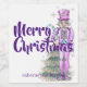 Este rótulo de garrafa de vinho glamouroso e festivo apresenta um tema natalício Nutcracker. Uma imagem de um quebra-cabeça ilustrado é impressa à direita, em frente a uma árvore de Natal. A brilha falsa adiciona um toque de vírgula às ilustrações. A saudação "Feliz Natal" é impressa em uma fonte grande e roxa de script. Você pode personalizar o rótulo do frasco para incluir seu próprio nome ou outro texto personalizado.