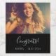 Personalize e adicione foto e um texto. A palavra Congrats é escrita com um estilo de letra à mão moderno. Letras brancas. Para ele e para ela. Para uma celebração, aniversários, formatura, casamento.
