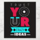 This striking motivational typography design features the phrase “Trust Your Crazy Ideas” arranged in a bold, modern layout. The word “YOUR” is emphasized using oversized letters in red and white, creating a strong visual hierarchy. The letter “O” is stylized as a target with concentric circles, symbolizing focus and belief.
