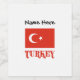 A bandeira turca mostra nesta imagem com a palavra TURKEY abaixo em cores que correspondem à bandeira. A bandeira é vermelha, com uma lua crescente branca e uma estrela branca. Há um espaço para adicionar seu nome a um toque personalizado ou adicionar o nome de outra pessoa a um presente personalizado.