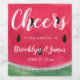 O rótulo do vinho de verão Cheers To The Wedding com gráficos de melancia e texto branco mutável - você pode adicionar o nome de Bride e Groom e a data do casamento