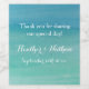 Costume Mar verde praia, vinho de casamento ou etiquetas de garrafa de água primavera. Modelo com uma garrafa de água elegante personalizada com fundo azul-oceano de turquesa aqua. Tipografia de script de rico para nomes de noiva e noiva e mensagem de obrigado. Use como decoração de mesa elegante ou obrigado que você prefere para convidados na festa. Inclui nome ou monograma mais data do casamento. Design de pintura de aquarela marítima. Também é bom para noivado rico ou reunião de aniversário. Crie as suas etiquetas de água mineral natural com esta modelo brilhante. Cor de fundo personalizável. Acessórios de casamento elegantes para noiva e noivo/casal de recém-casados. Adicione as letras iniciais do seu monograma mais a data do casamento. Entregas de festa personalizadas e etiquetas de plástico para bebidas e comida no local da sua festa. Também disponível em frascos de mason, garrafas de cerveja, garrafas de champanhe etc. Bonito ideias para decorações de luxo.