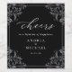 Estas elegantes legendas de casamento preto e branco ou as etiquetas de vinho jante para ensaio apresentam impressões brancas sobre fundo preto. A palavra "Cheers" está em um roteiro elegante e é cercada por um clássico design de ornamentado de quadros de de quadros de. É perfeito para um casamento preto clássico e sofisticado ou janto de ensaio. Veja todos os produtos correspondentes na minha coleção abaixo.