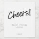 Etiquetas personalizadas de garrafa de vinho de castigo em design preto e branco "Cheers", que são personalizadas com nomes, data de casamento e tipo de vinho. Podem ser usados como presentes de casamento, para um janto de ensaio ou festa de noivado. Qualquer desculpa para celebrar a noiva e o noivo!