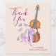 Uma etiqueta de garrafa de vinho que diz Obrigado e sua linha de assinatura como Love & Hugs, Name(s). Uma design feminina suave. Ilustrada com uma imagem de aquarela de um violino de madeira, alguns balés cor-de-rosa descansando contra ele e decorados com flores e borboletas. Colocado sobre um fundo cor-de-rosa cor de pêssego.