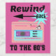 Voltar ao anos 80, este design apresenta um estilo retroativo da década de 1980 em rosa e azul com texto dizendo, "Voltar ao anos 80".