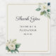 Elevate your wedding reception with these timeless wine labels. Featuring an elegant design of white flowers and green leaves in a watercolor style, this design adds a calm sophistication to your table decor. The classic combination of romantic script and modern serif typography creates a stylish look. Perfectly suited for classic, garden, or rustic wedding themes, these labels are a beautiful way to say "Thank You" to your guests and to add a personalized touch to the table.