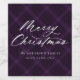 Etiquetas de vinho elegantes e rústicas, com "Feliz Natal" em roteiros de caligrafia branca, em fundo de xadrez roxo pintado. Personalize as etiquetas de vinhos de férias de xadrez, acrescentando seu nome e ano. As etiquetas de vinho de xadrez são perfeitas para presentes de albergue e festas de férias.