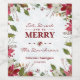 Design de cartão elegante com buquês de canto, cor d'água, vermelho e branco, divisores florais, belos guiões de mão e fontes especiais, tudo sobre um fundo padrão de flocos de neve. Use a ferramenta Personalizar para adicionar suas informações e fazer alterações. Para encontrar itens, por favor, visite minha coleção Poinsettia Flocos de Neve de inverno.