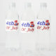 Celebre o Dia da Independência dos EUA com este rótulo de garrafa d'água apresentando 4 de julho em texto azul e vermelho 3D e o chapéu do Tio Sam.