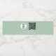 A modern minimalist green personalized business water bottle label with business logo, text, website and QR code. Personalize with your logo, QR code and details to create your own design.