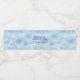 Um rótulo de garrafa de água de casamento com um elegante brilho azul de bebê e fundo de película.