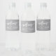 Adicione um toque personalizado moderno ao seu casamento com esta garrafa de água de casamento. Este rótulo da garrafa de água de cinza apresenta um roteiro manuscrito, uma simples tipografia e fundo preto. Outras cores estão disponíveis.