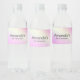 Etiquetas de garrafa de água com um belo fundo. Um céu pastel cor-de-rosa com nuvens lisas e um arco-íris cor de limão. Design mágico e caprichoso.