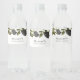 Etiqueta de rótulo de garrafa de água com tema floral gótico apresentando ilustração de rosas pretas em um fundo branco.