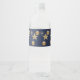 Christmas Party Golden Ornaments Navy Blue Elegant Water Bottle Label. Unique, beautiful, stylish design. Easy to be personalized. Font style, size and colors can be changed. Matching items are available.