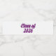 Graduation water bottle labels with Class of 2026 in 3D purple text. Available in several sizes.