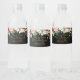 Etiquetas de garrafas de água escura e dourada, com uma cor d'água esplêndida e floral, guardadas no topo. As flores de aquarelas apresentam uma pincelada arrojada e flores brancas com botânicos verdes. Uma tipografia de ouro elegante para o Sr. e Sra., sobrenome e casamento de Newlyws.