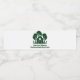Este rótulo de garrafa de água da empresa de imóveis florestais é perfeitamente personalizado para um corretor de imóveis que está realizando uma casa aberta perto da natureza ou das florestas. A silhueta verde das árvores atrás de uma cabana de madeira e personalizada com o nome do seu agente e da empresa imobiliária para marketing nas matas.