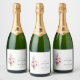 Um rótulo de garrafa de vinho espumante, bem desenhado, com flores aquosas delicadas em tons pastel macios. A elegante tipografia e o layout minimalista criam um sentimento sofisticado e romântico, perfeito para casamentos, aniversários e comemorações especiais. Totalmente personalizável com nomes, data e detalhes pessoais para tornar seu evento ainda mais memorável.