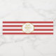 Feriados felizes Etiquetas de água de Natal com padrão de listras vermelhas e brancas, detalhes de ouro e nome personalizado.