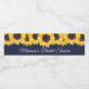 Rótulos de garrafa de água com girassóis rústicos em azul marinho lindos e deliciosos para os convidados do seu Chá de Noivado.