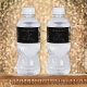 Rótulo De Garrafa De Vinho Glitter Glamoroso Elegante Personalizado Preto e D