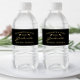 Comemore o marco do seu formando ao estilo com estas etiquetas graduadas de garrafas de água, com texto dourado em fundo preto. A palavra "Formando" aparece em um script gracioso no estilo de escrita manual. Um par de bonés de conselho de argamassa de ouro decoram a parte superior da etiqueta. Personalize-o com o seu formando e ano de graduação.