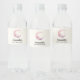 Etiquetas de garrafa de água com uma ilustração adorável que apresenta uma lua rosa e púrpura da lua. Bonito flores silvestres cor-de-rosa e amarelas adornam este corpo celeste.