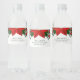 Um rótulo elegante de garrafa de água de evento de Natal apresenta uma flor de poinsettia vermelha floral, bagas vermelhas, cones de pínus e folhas de árvores verdes. Perfeito para casamentos, chás de fraldas, festas de natal e muito mais!